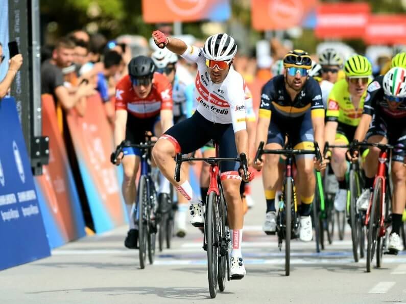 Ο 25χρονος Ματέο Μοσκέτι κράτησε ψηλά τη σημαία της θεωρητικά πιο ισχυρής ομάδας του μεγάλου ελληνικού αγώνα, μπαίνοντας με πολλές δυνάμεις στο τελικό σπριντ, για να περάσει πρώτος τη γραμμή του τερματισμού στην ειδυλλιακή παραλία της Ιτέας.