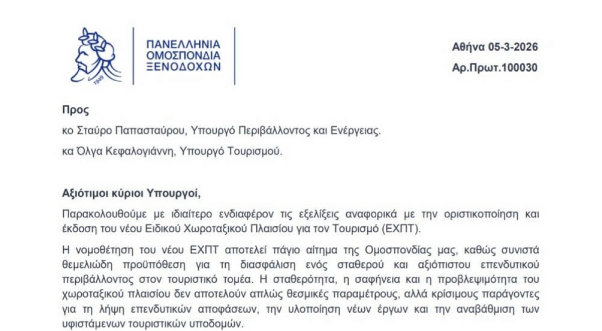 Κατόπιν των ανωτέρω, παρακαλούμε για την εφαρμογή της ισχύουσας νομοθεσίας στο πλαίσιο των αρμοδιοτήτων σας, τη διερεύνηση των καταγγελλόμενων πρακτικών και τη λήψη των προβλεπόμενων μέτρων, με σκοπό την αποκατάσταση της νομιμότητας, την προστασία του καταναλωτικού κοινού και τη διασφάλιση συνθηκών υγιούς ανταγωνισμού στην τουριστική αγορά.