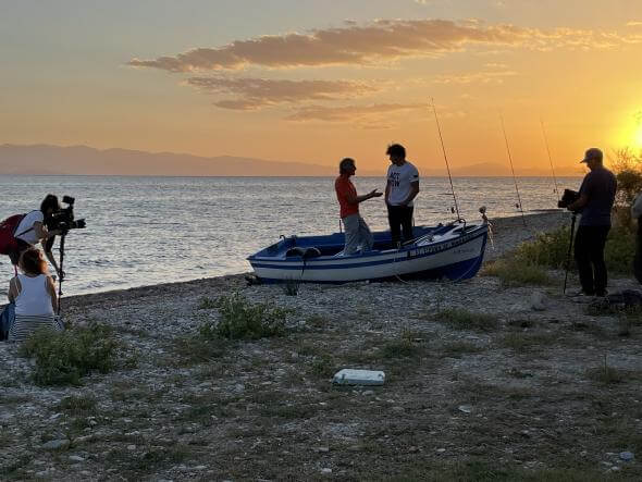 2η: Κατά τη διάρκεια των γυρισμάτων στο Γυναικείο Αγροτουριστικό Συνεταιρισμό «Εσπερίδες» της Βυζίτσας.