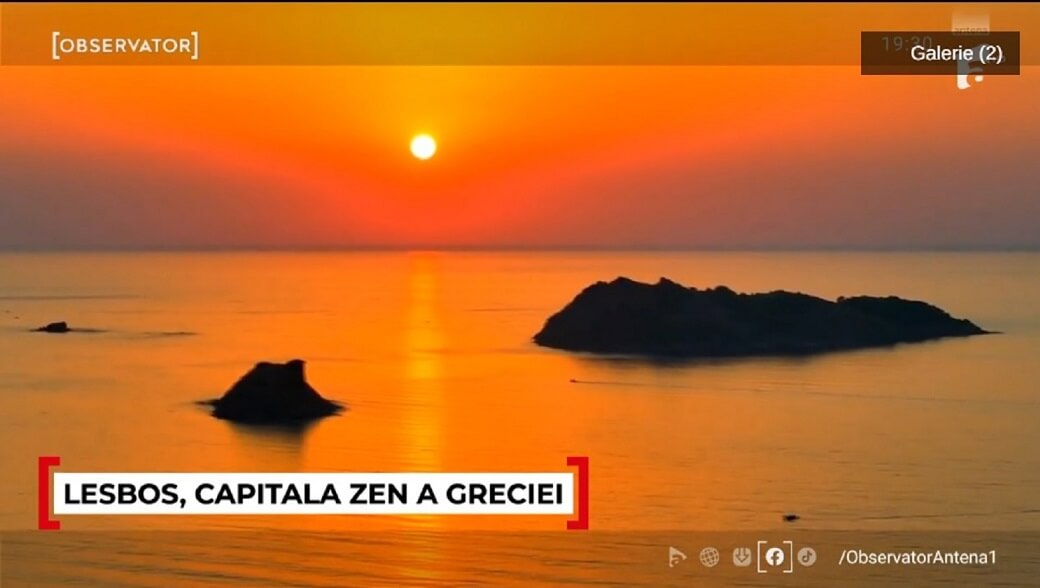 Την ίδια στιγμή, ως την «ελληνική πρωτεύουσα του ζεν» παρουσίασε το νησί της Λέσβου η ενημερωτική εκπομπή υψηλής τηλεθέασης «Observator» του ρουμανικού τηλεοπτικού δικτύου Antena 1, δίνοντας έμφαση στο αίσθημα γαλήνης και πληρότητας που αισθάνεται ο επισκέπτης στο νησί του Βόρειου Αιγαίου.