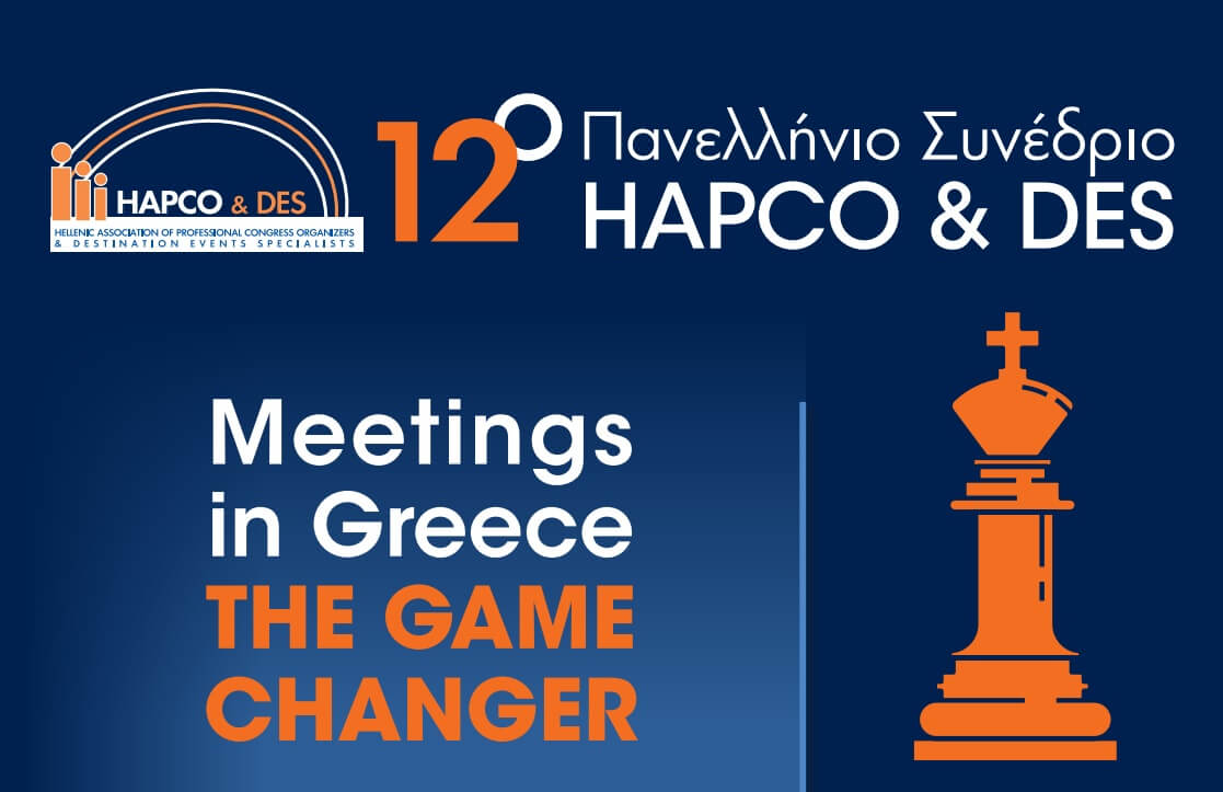 Το 12o Πανελλήνιο Συνέδριο του HAPCO & DES (Hellenic Association of Professional Congress Organizers & Destination Events Specialists – Σύνδεσμος Ελλήνων Επαγγελματιών Εκδηλώσεων και Οργανωτών Συνεδρίων), με τίτλο «Meetings in Greece: The Game Changer», θα πραγματοποιηθεί στο ξενοδοχείο Μεγάλη Βρεταννία, στην Αθήνα, στις 16 και 17 Μαρτίου 2023.