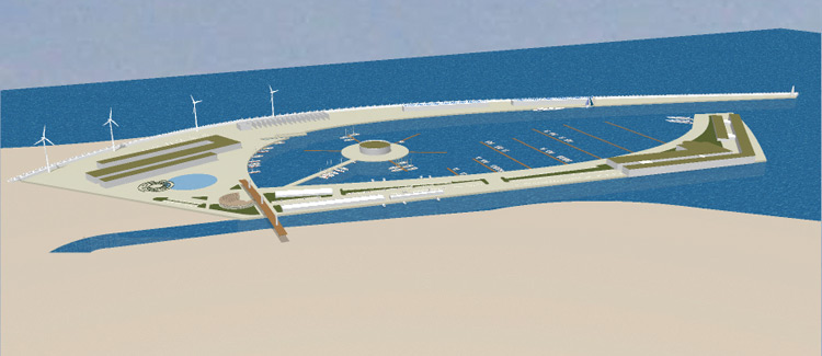 Στη χερσαία ζώνη της μαρίνας θα δημιουργηθούν χώροι αναψυχής, κτήρια διοίκησης, ξενοδοχείο, εμπορικά καταστήματα και μεγάλο parking.