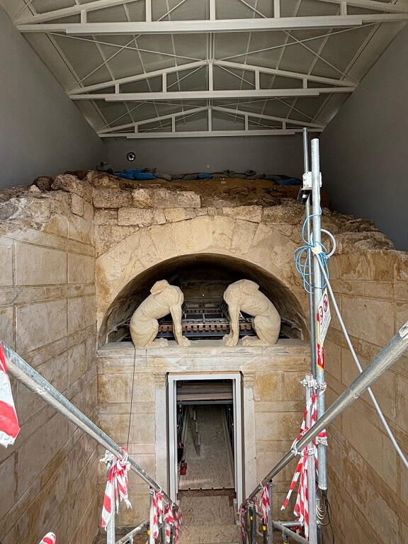 Προχωρούν τα έργα συντήρησης – αποκατάστασης στον Τύμβο Καστά, στην Αμφίπολη των Σερρών, με στόχο το μνημείο να είναι επισκέψιμο το 2027.