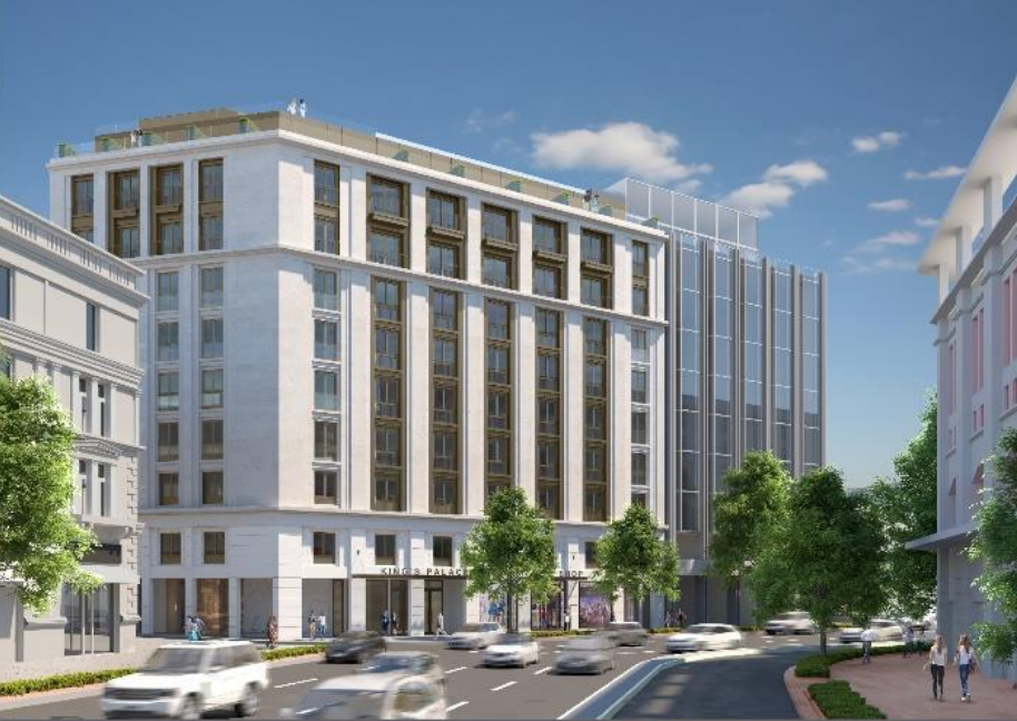 Προχωράει η ριζική ανακατασκευή του κτηρίου που βρίσκεται στη συμβολή της Πανεπιστημίου με την Κριεζώτου, σχεδόν δίπλα στην πλατεία Συντάγματος, από την εταιρεία «ΛΑΜΨΑ» του ομίλου Λασκαρίδη (Μεγάλη Βρεταννία, King George, Sheraton Rhodes Resort κ.ά.), με σκοπό να μετατραπεί σε 5άστερο ξενοδοχείο.