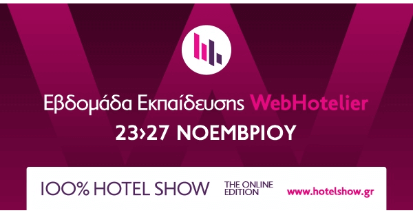 Στο πλαίσιο της σταθερής συνεργασίας, το κορυφαίο Booking Engine, συμμετέχει στο 100% Hotel Show | The Online Edition | 23 – 27 Νοεμβρίου, διοργανώνοντας την πρώτη Εβδομάδα Εκπαίδευσης WebHotelier με στόχο να ενημερώσει ξενοδόχους και villa owners για τις λειτουργίες και λύσεις της ηλεκτρονικής πλατφόρμας κρατήσεων.