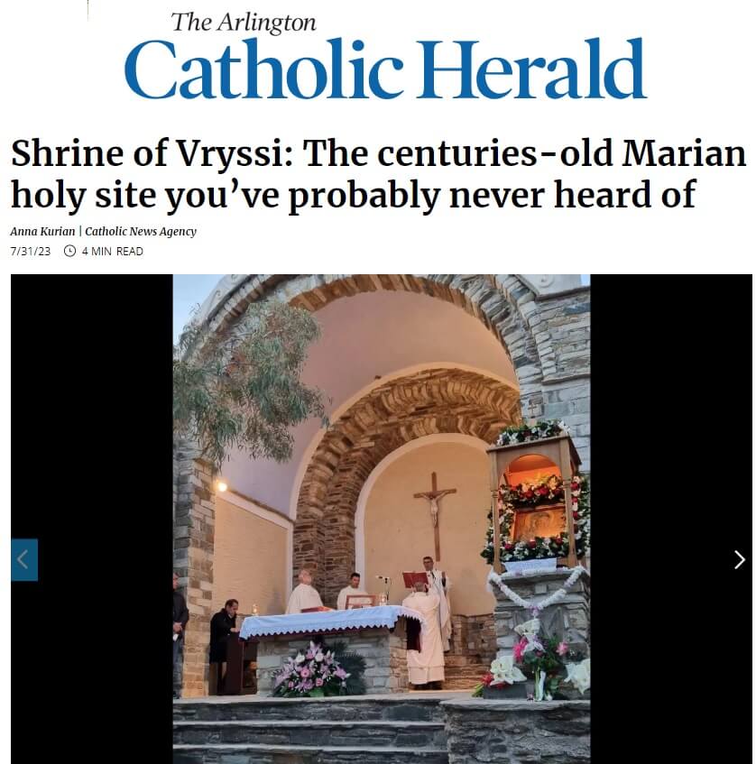 Σημαντική προβολή στο καθολικό στοιχείο της Τήνου κάνει με ειδικό εκτενές αφιέρωμα η Catholic Herald, επίσημο όργανο της Ρωμαιοκαθολικής Επισκοπής του Άρλινγκτον στις ΗΠΑ.