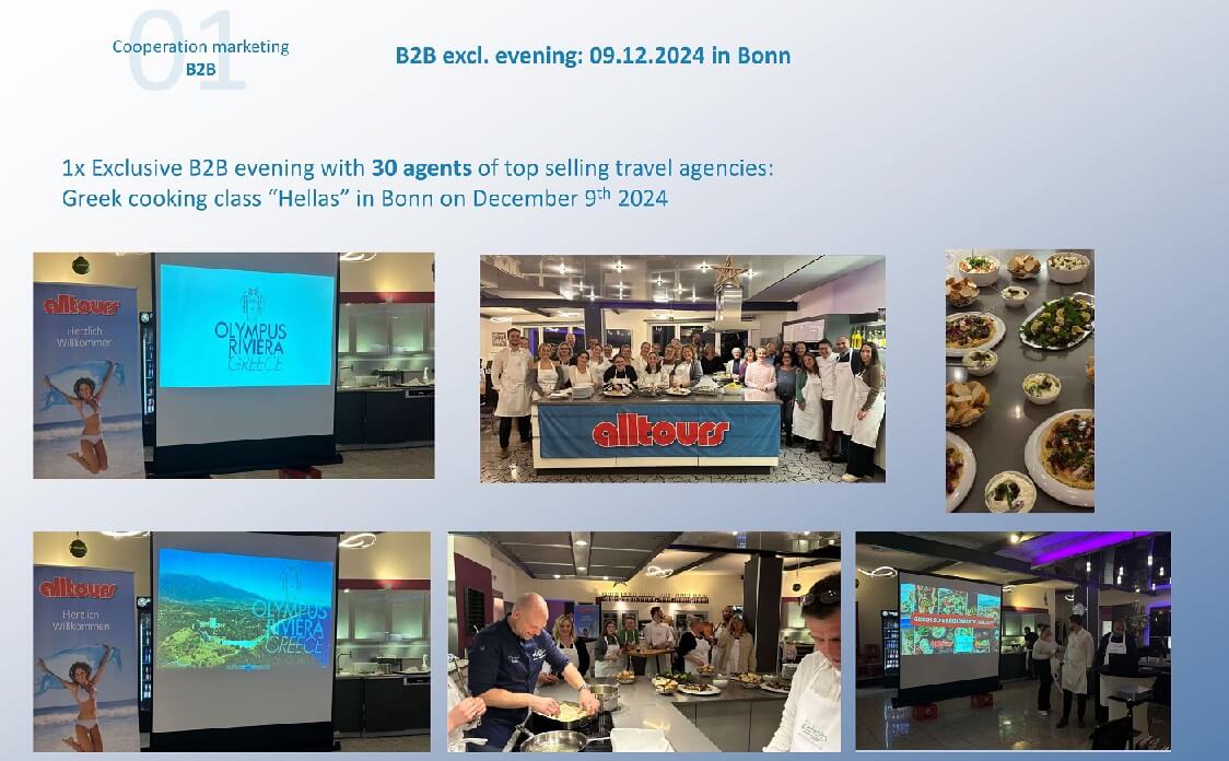 Αξίζει επίσης να επισημανθεί με την ολοκλήρωση του κύκλου της προώθησης ενημέρωσης, τα στελέχη και οι συνεργάτες της γερμανικής εταιρείας ταξιδιωτικών πρακτόρων, πραγματοποίησαν στη Βόννη, τη Δευτέρα 9 Δεκεμβρίου, ειδική αποκλειστική εκδήλωση παρουσίασης του προορισμού «Olympus Riviera», με την Πιερία να κυριαρχεί, να βρίσκεται στο επίκεντρο του ενδιαφέροντος και να πρωταγωνιστεί στις τουριστικές προοπτικές και διεθνείς αγορές επισκεπτών του σήμερα και του αύριο.