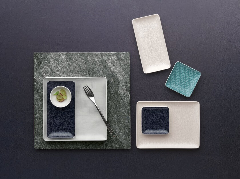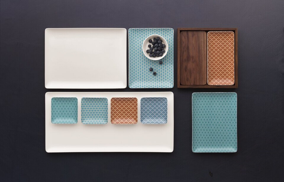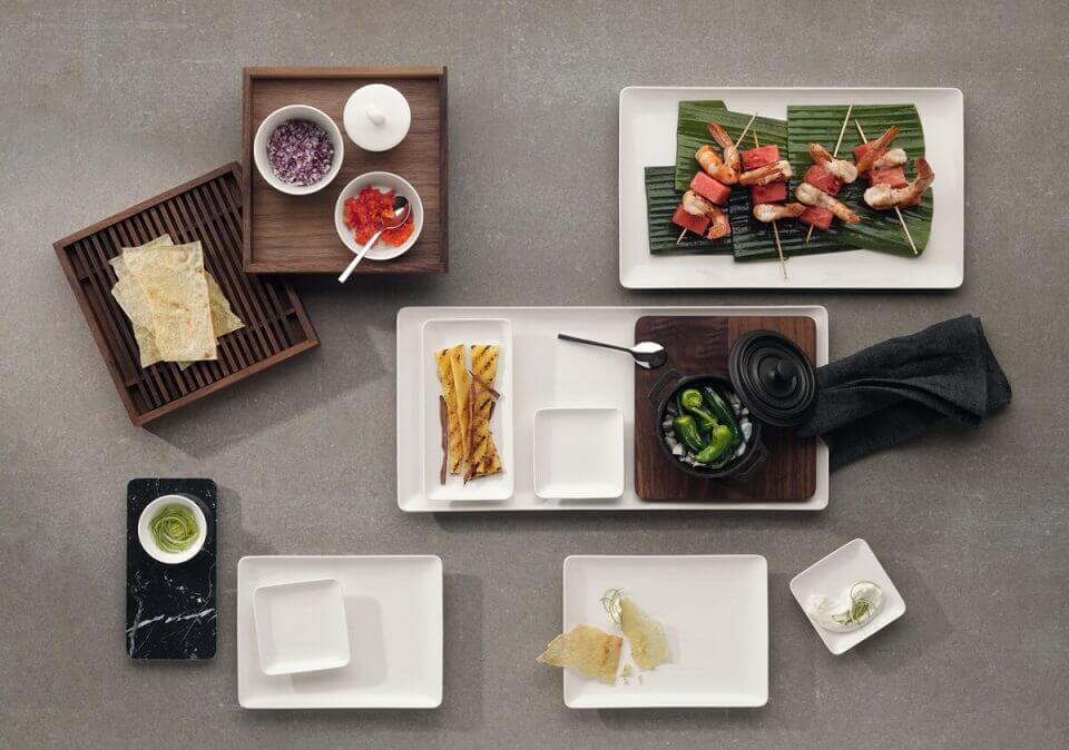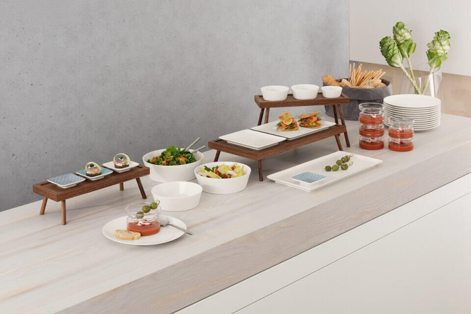Τα πιάτα και οι πιατέλες με επακριβώς συντονισμένες πλευρικές διαστάσεις μπορούν να ομαδοποιηθούν για εξοικονόμηση χώρου τόσο στο μπουφέ όσο και στο τραπέζι.