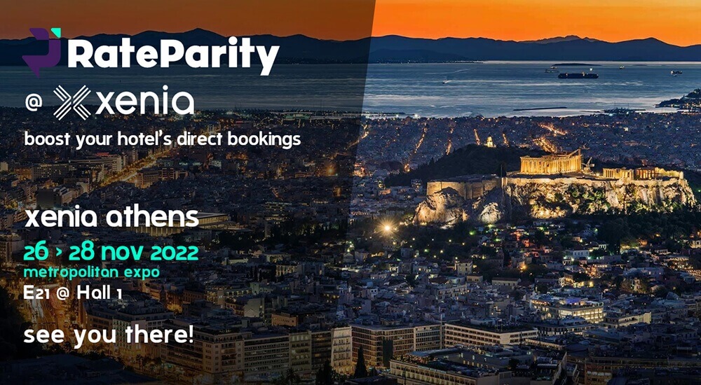 Τo RateParity, η πιο εξελιγμένη και δυναμική πλατφόρμα αύξησης του conversion rate για ξενοδοχεία, συμμετέχει στην έκθεση Xenia, που θα πραγματοποιηθεί 26 – 28 Νοεμβρίου 2022, στο Metropolitan Expo, δίπλα στο αεροδρόμιο «Ελευθέριος Βενιζέλος» της Αθήνας.