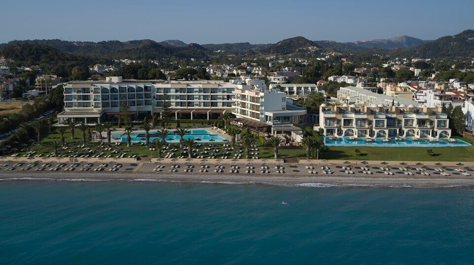 Το The Ixian Grand & All Suites, που βρίσκεται στην παραλία της Ιξιάς, διαθέτει 348 δωμάτια και σουίτες, έξι εστιατόρια και bars.