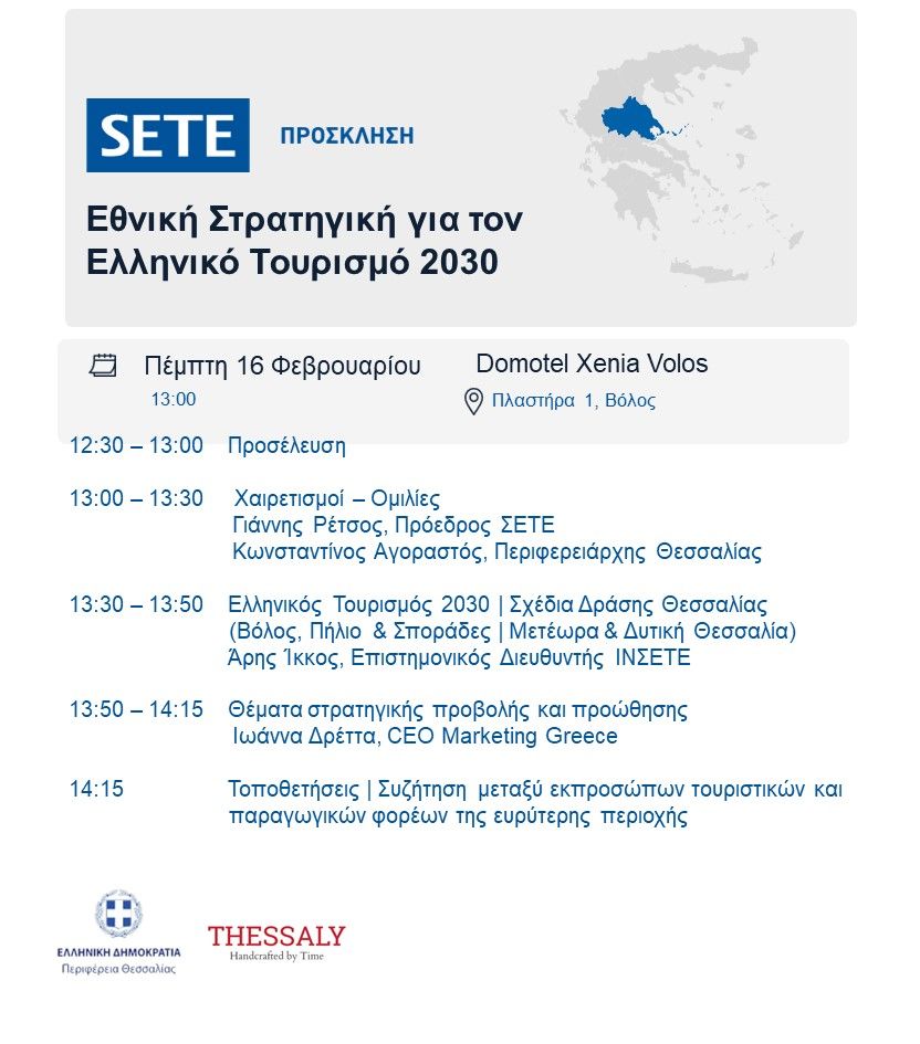 Επόμενος σταθμός η Θεσσαλία, την Πέμπτη, 16 Φεβρουαρίου, στη 13:00, στο ξενοδοχείο Domotel Xenia Volos.