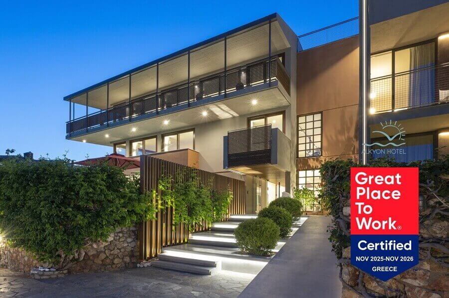 Το 5άστερο Skiathos Palace Hotel και το 4άστερο Alkyon Hotel, μέλη του Ομίλου Σποράδων της οικογένειας Δερβένη, πιστοποιήθηκαν για δεύτερη συνεχόμενη χρονιά από τον διεθνώς αναγνωρισμένο οργανισμό Great Place to Work® Hellas, επιβεβαιώνοντας τη σταθερή δέσμευση του Ομίλου στη δημιουργία ενός εργασιακού περιβάλλοντος εμπιστοσύνης, αξιοκρατίας και επαγγελματικής εξέλιξης.