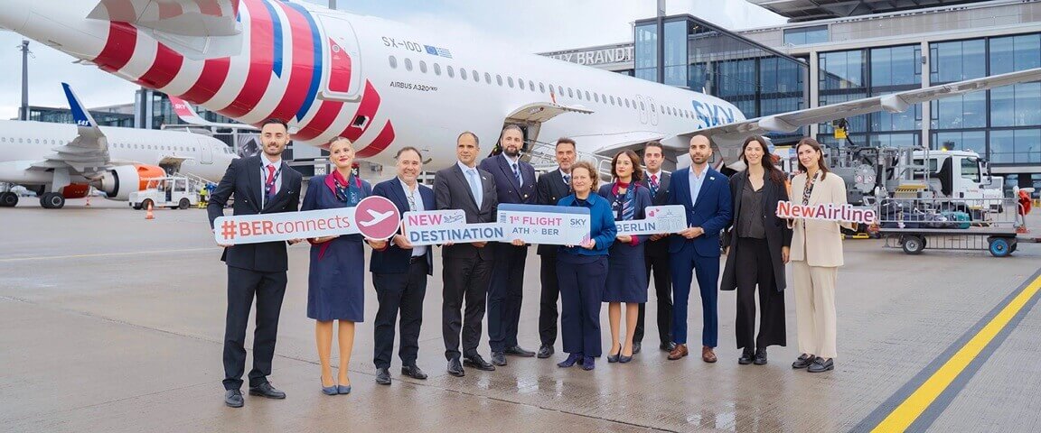 Στο πλαίσιο της σταθερής επέκτασης του διεθνούς της δικτύου, η SKY express εγκαινίασε στις 16 Οκτωβρίου τη νέα απευθείας σύνδεση Αθήνα – Βερολίνο με τέσσερις εβδομαδιαίες πτήσεις (Δευτέρα, Πέμπτη, Παρασκευή, Κυριακή).