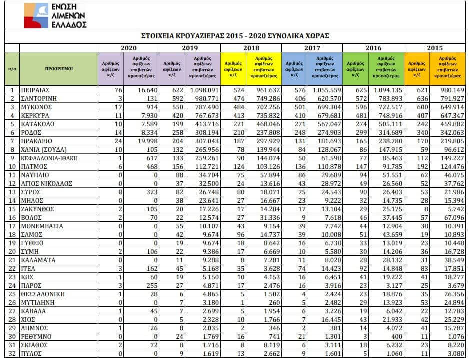 Δείτε ΕΔΩ ολόκληρο τον πίνακα με τα στοιχεία της κρουαζιέρας 2015 – 2020.