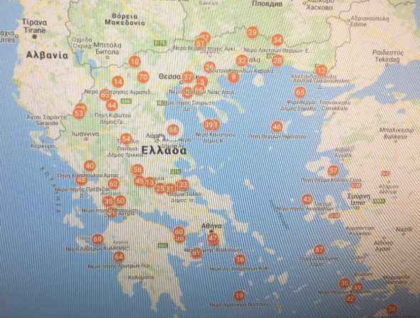… εμφανίζεται ο χάρτης της Ελλάδας με τα σημεία όπου βρίσκονται οι 70 πηγές.