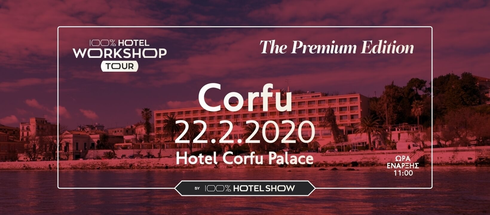 Το 100% Hotel Workshop Tour – The Premium Edition θα επισκεφθεί για δεύτερη φορά την Κέρκυρα, με σκοπό να εκπαιδεύσει το Ξενοδοχειακό κοινό σε σχέση με τις τελευταίες εξελίξεις στους τομείς της Ξενοδοχειακής Αρχιτεκτονικής, της Εμπειρίας, των Νέων Αγορών αλλά και του Προσωπικού των Ξενοδοχείων.