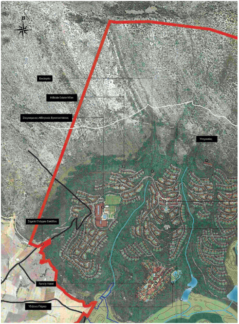 β) υβριδικό κέντρο υδροθεραπείας (SPA), συνεδριακό κέντρο, πολιτιστικές εγκαταστάσεις, εμπορικές εγκαταστάσεις, εγκαταστάσεις εστίασης – αναψυχής, αθλητικές εγκαταστάσεις τένις και αθλοπαιδιών, παιδότοπος, ελικοδρόμιο.