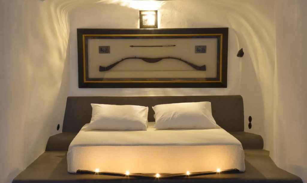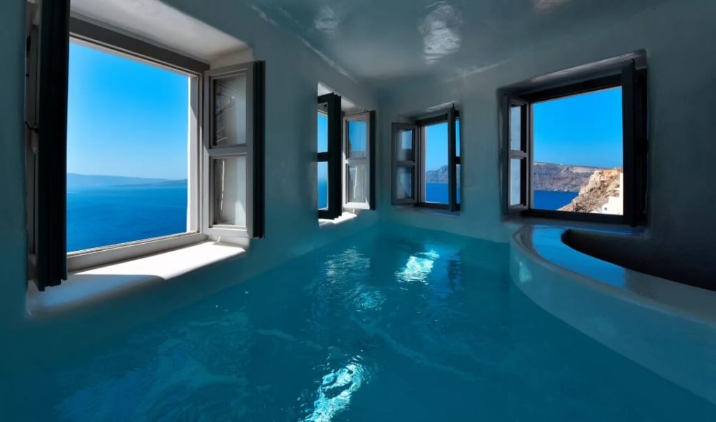 To Ducato di Oia διαθέτει 10 υπόσκαφα (cave style) δωμάτια και σουίτες, σχεδόν όλα με εσωτερική ή εξωτερική θερμαινόμενη πισίνα και θέα στην Καλντέρα.