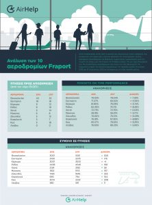 Η κα. Χρύσα Πομόνη υπεύθυνη της AirHelp Ελλάδα εξηγεί: «Βλέπουμε από τον πίνακα, ότι η αύξηση στην εξερχόμενες πτήσεις στα 9 από τα 10 αεροδρόμια της Fraport είναι χαρακτηριστική. Οι μεγαλύτερες αυξήσεις σε αριθμό πτήσεων παρουσιάζονται στο αεροδρόμιο της Θεσσαλονίκης (500 πτήσεις επιπλέον μόνο γι’ αυτό το δίμηνο), της Ζακύνθου με 353 πτήσεις αναχώρησης επιπλέον, της Μυκόνου και της Σαντορίνης με 197 και 176 επιπλέον πτήσεις αντίστοιχα».