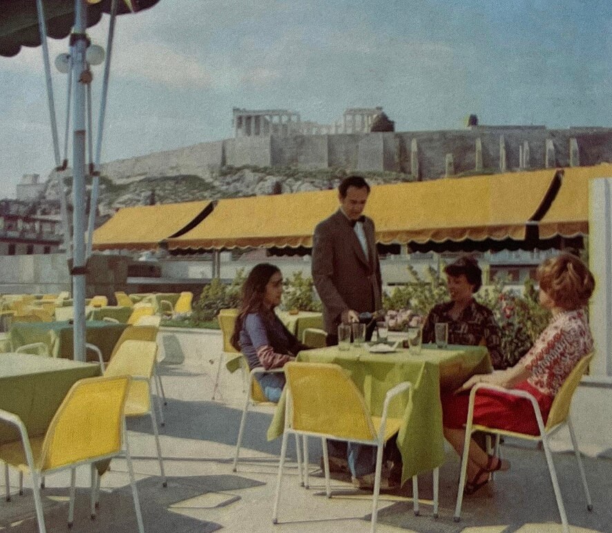 Φωτογραφία του roof top café – restaurant του Herodion (το σημερινό Point-a Βar & Restaurant) τα πρώτα χρόνια της λειτουργίας του