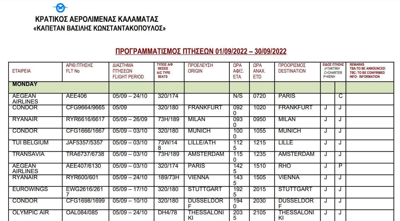 Συνεχίζεται και το Σεπτέμβριο η δυναμική πορεία του αεροδρομίου της Καλαμάτας «Καπετάν Βασίλης Κωνσταντακόπουλος», καθώς εκτός από την εσωτερική σύνδεση με τη Θεσσαλονίκη που συνεχίζεται πέντε φορές την εβδομάδα (Τρίτη – Σάββατο), καθ’ όλη τη διάρκεια του μήνα θα υπάρξει σύνδεση της Καλαμάτας με: