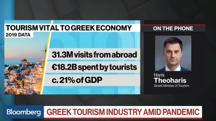 Στις προοπτικές του ελληνικού τουρισμού, τις επόμενες κινήσεις και τις άμεσες ενέργειες στο πλαίσιο των μέτρων της κυβέρνησης που αφορούν τη συντεταγμένη για τον τουρισμό αντιμετώπιση της κρίσης του κορονοϊού, αναφέρθηκε ο υπουργός Τουρισμού, Χάρης Θεοχάρης σε συνέντευξή του στο διεθνές οικονομικό ειδησεογραφικό πρακτορείο «Bloomberg».