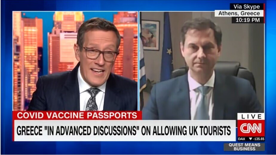 Στο πλαίσιο της συνέντευξής του στο CNN, o Υπουργός Τουρισμού σχολίασε την αρνητική στάση ορισμένων χωρών στην ελληνική πρόταση περί πιστοποιητικού εμβολιασμού ως εξής: