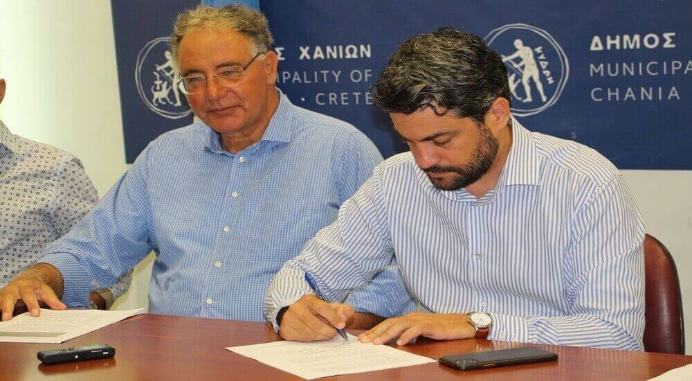 Στην υπογραφή της σύμβασης, που πραγματοποιήθηκε στην Αίθουσα Τύπου του Δημαρχείου Χανίων, παρευρέθηκε επίσης ο Αντιδήμαρχος Τουρισμού, Νεκτάριος Ψαρουδάκης, καθώς και συνεργάτες του Μ.Α.Ι.Χ.