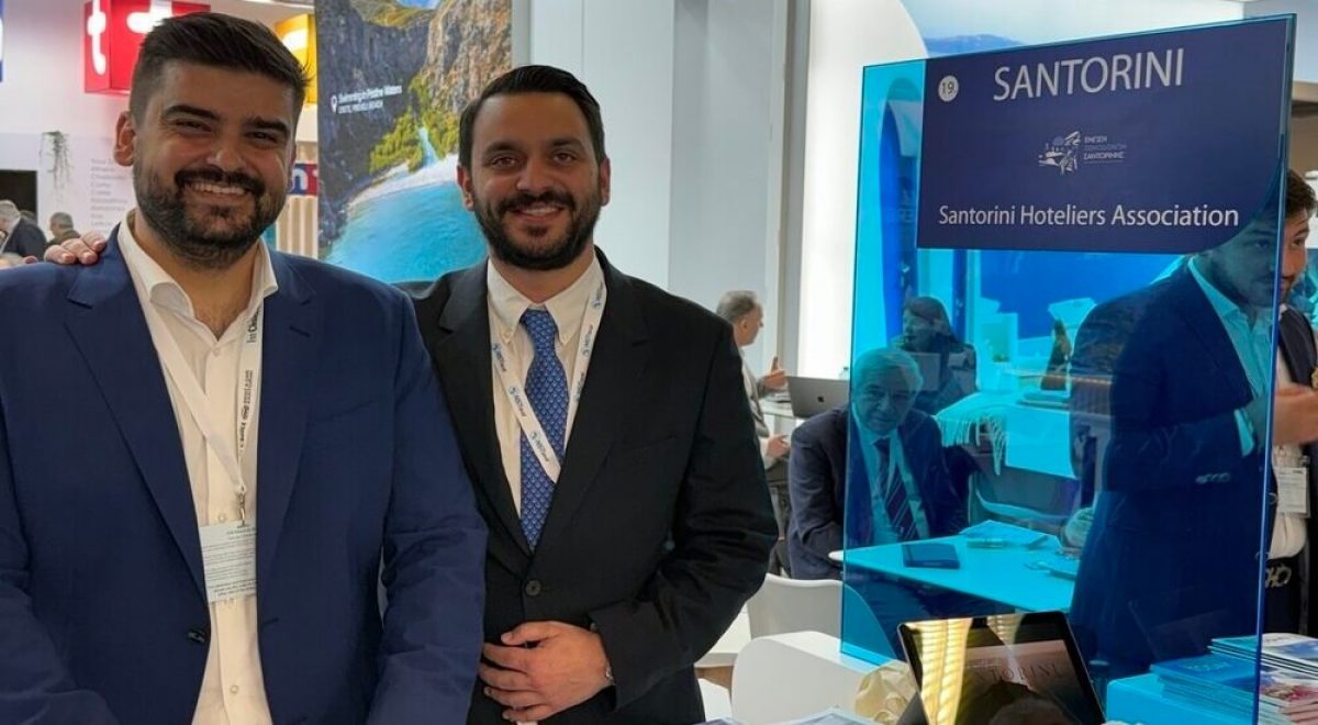 Δυναμικά παρούσα ήταν και φέτος η Ένωση Ξενοδόχων Σαντορίνης μέσω του προέδρου της Αντώνη Παγώνη και του μέλους του Δ.Σ. της, Γιώργου Δημητροκάλη, στη μεγάλη διεθνή έκθεση τουρισμού W.T.M. 2025 του Λονδίνου. Με την παρουσία του προέδρου και του κυρίου Δημητροκάλη, πραγματοποιήθηκαν συναντήσεις με στελέχη της