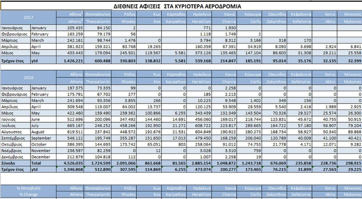 Την περίοδο Ιανουαρίου - Μαΐου 2017, η εισερχόμενη ταξιδιωτική κίνηση αυξήθηκε κατά 2,4% και διαμορφώθηκε στα 4.584.200 ταξιδιώτες, έναντι 4.475.200 την αντίστοιχη περίοδο του 2016, σύμφωνα με τα στοιχεία που ανακοίνωσε χθες η Τράπεζα της Ελλάδας. Η ταξιδιωτική κίνηση μέσω αεροδρομίων αυξήθηκε κατά 8,4%, ενώ αυτή