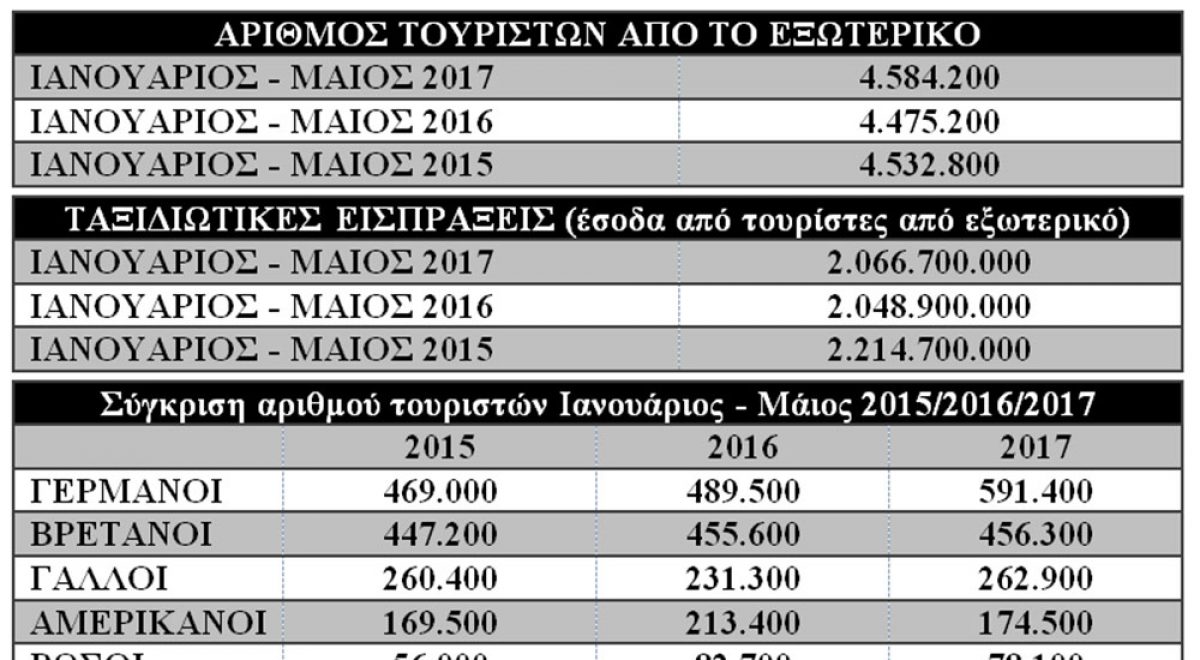 Μικρή αύξηση τουριστών και εσόδων το πρώτο πεντάμηνο