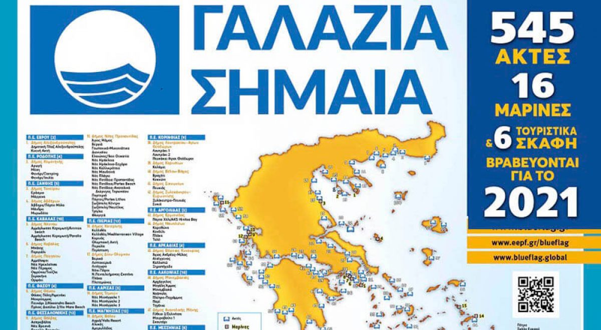 Με 623 βραβευμένες ακτές, η Ελλάδα κατέχει και πάλι τη 2η θέση παγκοσμίως ανάμεσα σε 52 χώρες, σύμφωνα με τη σχετική ανακοίνωση από την Ελληνική Εταιρία Προστασίας της Φύσης (ΕΕΠΦ), Εθνικό Χειριστή του Διεθνούς Προγράμματος «Γαλάζια Σημαία» στην Ελλάδα. Αξίζει να σημειωθεί ότι στη χώρα μας