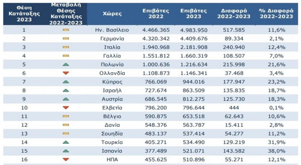 Το πρώτο τετράμηνο (Ιανουάριος - Απρίλιος) του 2024, καταγράφηκαν στα ελληνικά αεροδρόμια 3,1 εκατ. διεθνείς αεροπορικές αφίξεις, παρουσιάζοντας αύξηση κατά 335.000 αφίξεις σε σχέση με το ίδιο διάστημα του 2023. Επιπλέον, το πρώτο τρίμηνο (Ιανουάριος - Μάρτιος) του 2024, οι ταξιδιωτικές εισπράξεις (έσοδα), σημείωσαν αύξηση κατά