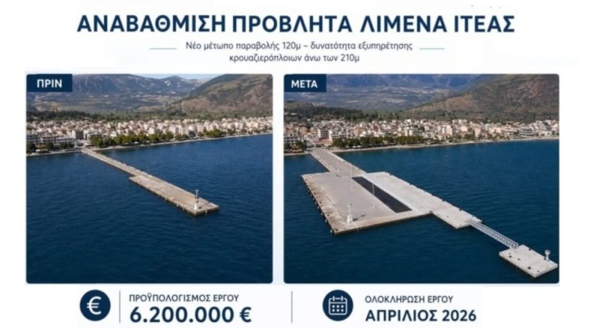 Αναβάθμιση προβλήτα λιμανιού Ιτέας: Δυνατότητα πρόσδεσης κρουαζιερόπλοιων άνω των 210 μ.