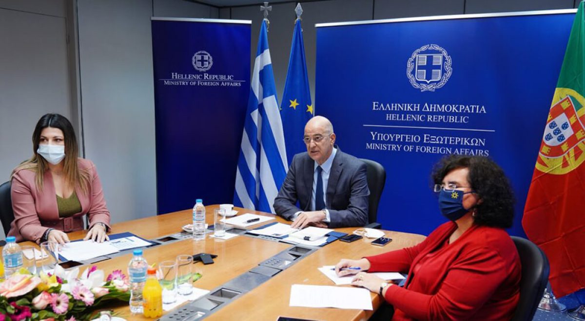 Τηλεδιάσκεψη με τους Πρέσβεις των χωρών μελών της ΕΕ διοργάνωσε η Πρεσβεία της Πορτογαλίας και η Πρέσβης Elena Peira στο πλαίσιο της Πορτογαλικής Προεδρίας του Ευρωπαϊκού Συμβουλίου με τη συμμετοχή του Υπουργού Εξωτερικών Νίκου Δένδια και της Υφυπουργού Τουρισμού Σοφίας Ζαχαράκη. [bsa_pro_ad_space id=6] Ο Υπουργός Εξωτερικών ενημέρωσε