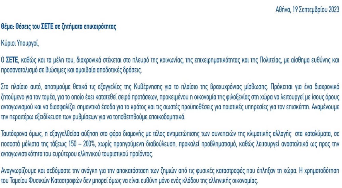 Το ετήσιο συνέδριο του Συνδέσμου Ελληνικών Τουριστικών Επιχειρήσεων (ΣΕΤΕ), θα πραγματοποιηθεί στις 12 Δεκεμβρίου 2023, στο Ωδείο Αθηνών, με στόχο την εκκίνηση ενός παραγωγικού διαλόγου για το βιώσιμο τουρισμό της επόμενης ημέρας και τίτλο «Reframing Tourism». Στο φετινό συνέδριο του ΣΕΤΕ εξετάζεται ο επαναπροσδιορισμός του ρόλου