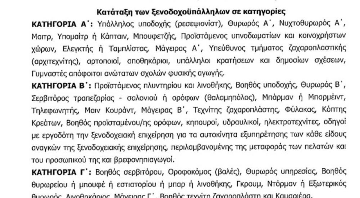 Τι περιλαμβάνει η νέα συλλογική σύμβαση εργασίας των ξενοδοχοϋπαλλήλων