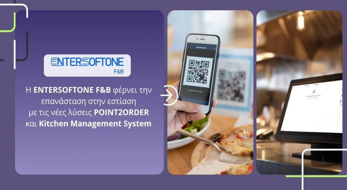 Η ENTERSOFTONE F&B, κορυφαίος πάροχος τεχνολογικών λύσεων για επιχειρήσεις εστίασης και φιλοξενίας, φέρνει τον κλάδο HO.RE.CA. στη νέα ψηφιακή εποχή, παρουσιάζοντας δύο νέες καινοτόμες εφαρμογές, το POINT2ORDER και το Kitchen Management System. Αξιοποιώντας τεχνολογία αιχμής, οι δύο λύσεις ενισχύουν την αποδοτικότητα, αναβαθμίζουν την εμπειρία του πελάτη
