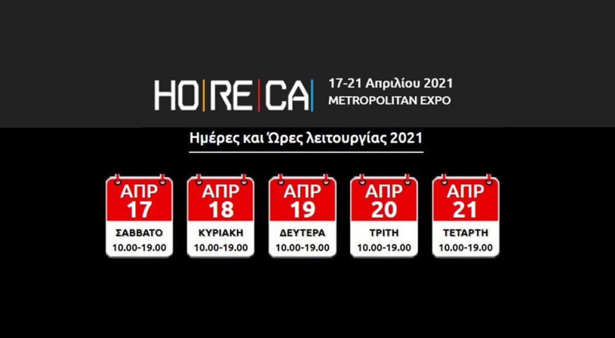 Η έκθεση HORECA 2021, η οποία είχε αρχικά προγραμματιστεί 11 - 15 Φεβρουαρίου, λόγω των εξελίξεων της πανδημίας, τόσο στην Ελλάδα όσο και το εξωτερικό, είναι πολύ πιθανόν να επηρεαστεί αρνητικά και να μην μπορέσει να πραγματοποιηθεί στις εμπορικές και κοινωνικές συνθήκες που τόσο οι