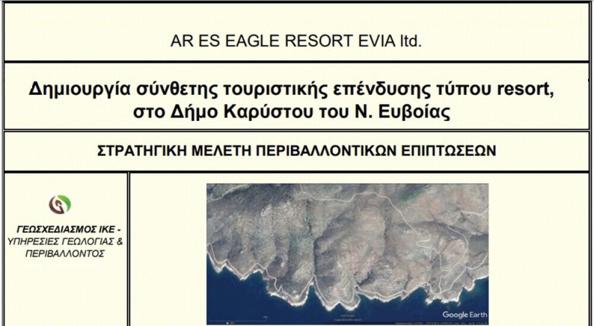 Την προηγούμενη Δευτέρα, το Δημοτικό Συμβούλιο της Καρύστου, σε έκτακτη συνεδρίασή του με τηλεδιάσκεψη έδωσε θετική γνωμοδότηση στη στρατηγική μελέτη περιβαλλοντικών επιπτώσεων μεγάλης τουριστικής επένδυσης που σχεδιάζεται στην περιοχή. Πρόκειται για επένδυση ύψους άνω των 200 εκατ. ευρώ σε έκταση 1.600 στρεμμάτων στη νότια Εύβοια από την αραβικών