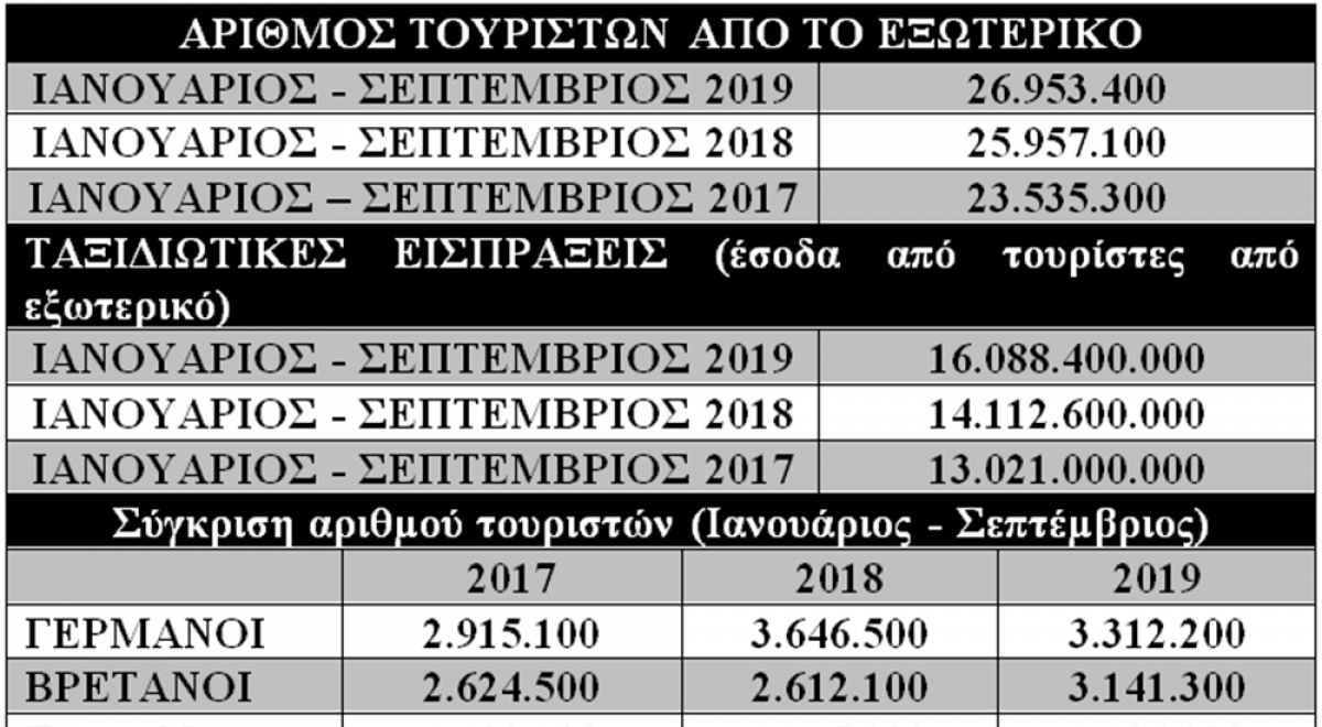 Την περίοδο Ιανουαρίου - Σεπτεμβρίου 2019, η εισερχόμενη ταξιδιωτική κίνηση αυξήθηκε κατά 3,8% και διαμορφώθηκε στα 26.953.400 ταξιδιώτες, έναντι 25.957.100 ταξιδιωτών την αντίστοιχη περίοδο του 2018. Ειδικότερα, η ταξιδιωτική κίνηση μέσω αεροδρομίων αυξήθηκε κατά 1,6%, ενώ αυτή μέσω οδικών σταθμών αυξήθηκε κατά 8%. Η ταξιδιωτική κίνηση από