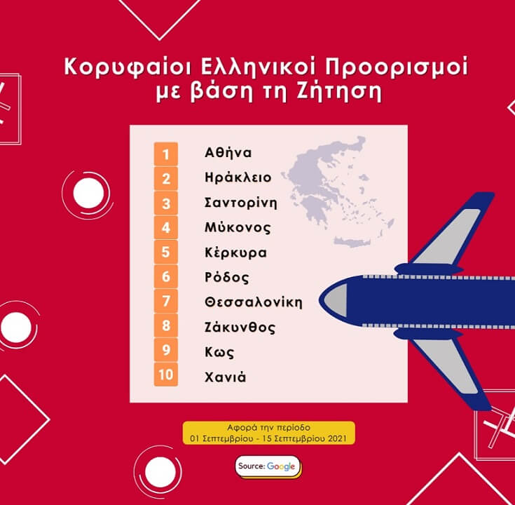 Στην κατάταξη των προορισμών της Ελλάδας με τη μεγαλύτερη ζήτηση: