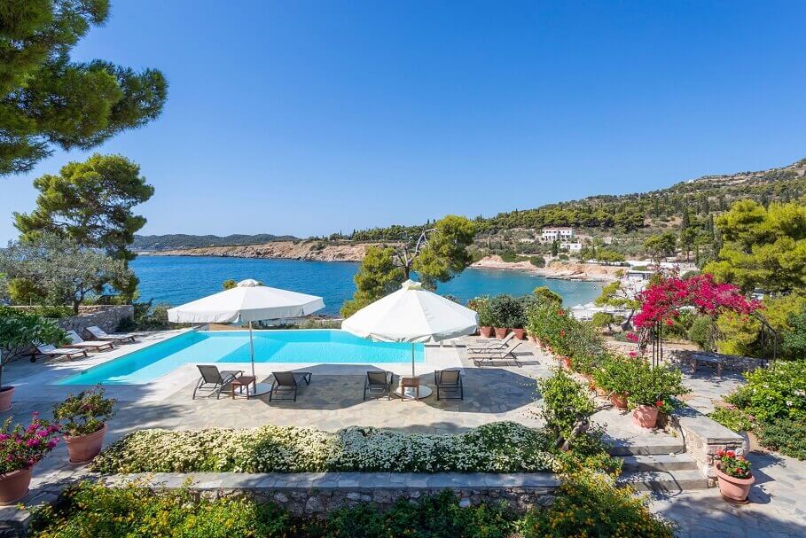 Η παραδοσιακή βίλα που δεσπόζει ακριβώς πάνω από τη θάλασσα, προσφέρει μια ξεχωριστή εμπειρία διαμονής και αποτυπώνει την απλότητα της αρχιτεκτονικής των Σπετσών μέσα από τη διακριτική πολυτέλεια.