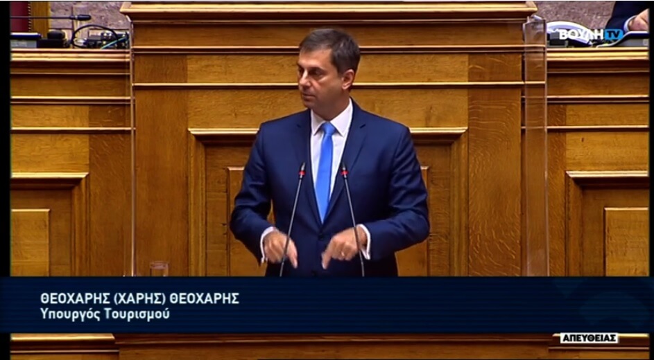 O Υπουργός Τουρισμού Χάρης Θεοχάρης στην ομιλία του στο πλαίσιο της συζήτησης στη Βουλή για την πρόταση δυσπιστίας του ΣΥΡΙΖΑ κατά του Υπουργού Οικονομικών Χρήστου Σταϊκούρα, παρουσίασε αναλυτικά το εκτεταμένο σχέδιο «ανοίγματος» του τουρισμού που εκπονήθηκε και υλοποιήθηκε σε συνεργασία με τα συναρμόδια υπουργεία, τους υγειονομικούς φορείς και τον ιδιωτικό τομέα, ενώ υπογράμμισε και τη σημασία του πρωτοπόρου συστήματος «EVA», το οποίο βελτίωσε την αποτελεσματικότητα των ελέγχων, παρείχε ενημέρωση για την κατάσταση μιας χώρας μέχρι και δύο εβδομάδες πριν ώστε να «κλείνουμε» τα σύνορα νωρίτερα και επέτρεψε να βλέπουμε πού έχουμε «συγκέντρωση» πιθανών κρουσμάτων από το εξωτερικό στα σύνορά μας.