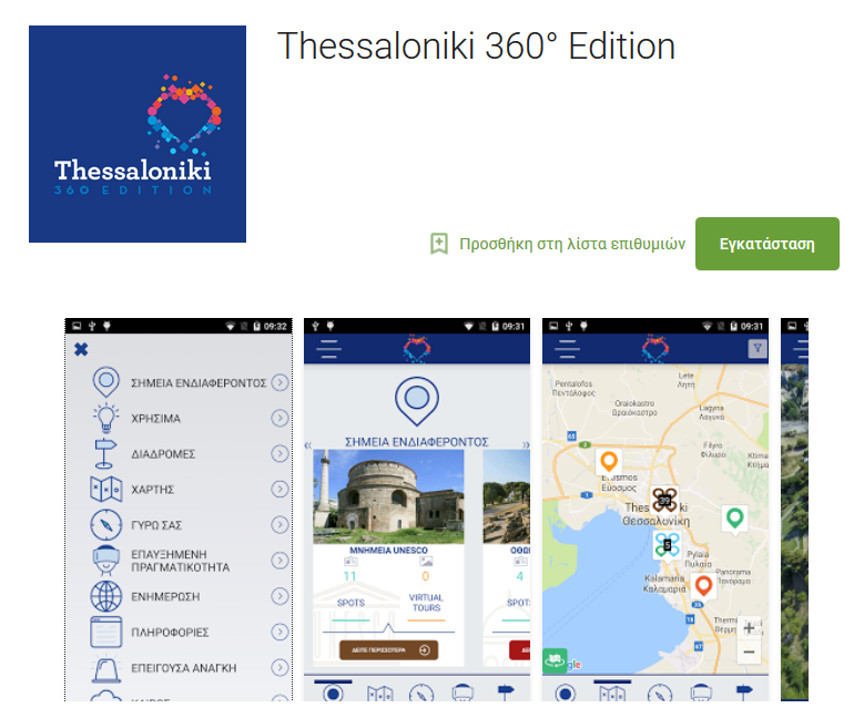 Από χθες είναι διαθέσιμη η καινούργια εφαρμογή της Περιφέρειας Κεντρικής Μακεδονίας για τα πολιτιστικά μνημεία της Θεσσαλονίκης, «Thessaloniki 360 edition guide», (δείτε ΕΔΩ), ένα application που δίνει τη δυνατότητα στο χρήστη να περιηγηθεί στα σημαντικότερα μνημεία και αξιοθέατα της πόλης σε περιβάλλον 360 και να πάρει μια πρώτη «πρόγευση εμπειρίας», καθώς και χρήσιμες πληροφορίες για τα μνημεία.