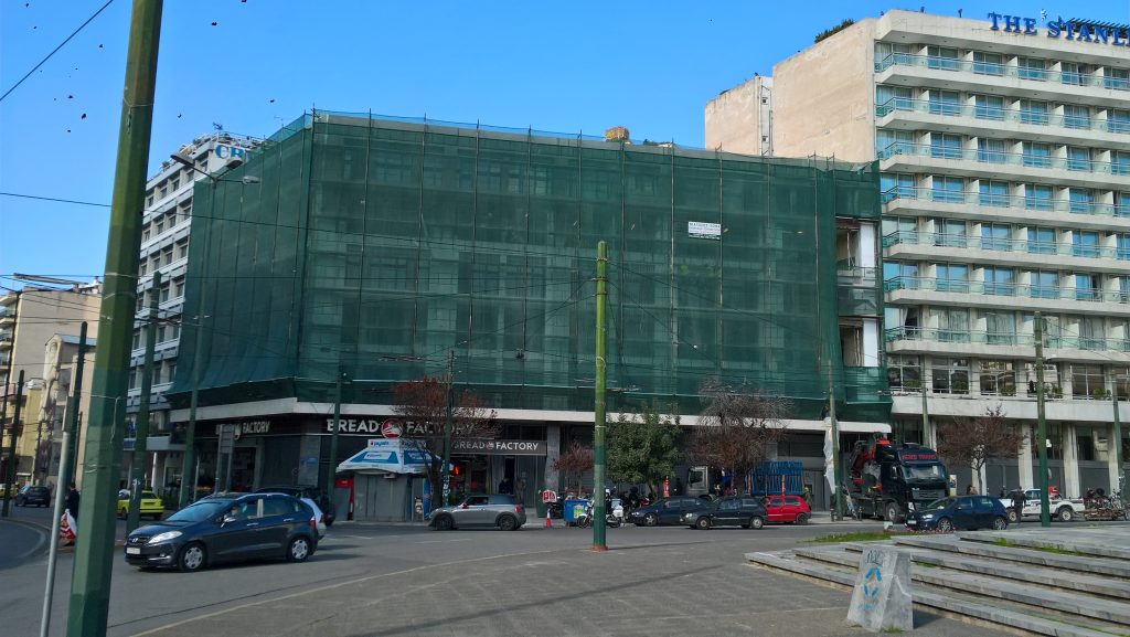Αριστερά διακρίνεται το Wyndham Grand Athens και δεξιά το κτήριο που θα μετατραπεί στο Wyndham Grand Residences & Suites