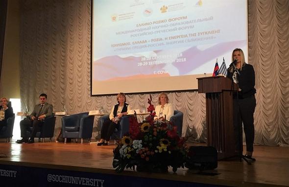 Η ενίσχυση της ελληνορωσικής συνεργασίας στον τουριστικό τομέα τα επόμενα χρόνια βρέθηκε στο επίκεντρο των εργασιών του Διεθνούς Επιστημονικού και Εκπαιδευτικού Ελληνο-Ρωσικού Φόρουμ «Τουρισμός. Η ενέργεια της σύγκλισης» , που πραγματοποιήθηκε στο πλαίσιο του Έτους Τουρισμού των δύο χωρών, στο πιο σημαντικό πανεπιστήμιο της Περιφέρειας Κράσνονταρ, το κρατικό Πανεπιστήμιο του Σότσι, 28 – 29 Σεπτεμβρίου.