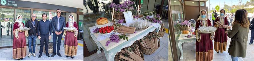 Με το καλωσόρισμα οι «Σκιαθίτισες» του Συλλόγου Γυναικών πρόσφεραν παραδοσιακά γλυκά της Σκιάθου, το έντυπο – έκδοση του Δήμου με παρουσίαση του προορισμού μεταφρασμένο στα γαλλικά, usb με video και φωτογραφίες, μια «πρόσκληση» για τις εκδηλώσεις του Δήμου, όπως οι Λαϊκοί Ιππικοί Αγώνες και το πανηγύρι της Ζωοδόχου Πηγής και μια χειροποίητη λαμπάδα για τη λειτουργία της Ανάστασης.