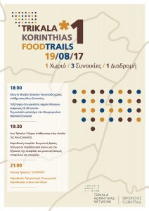 Το απόγευμα του Σαββάτου 19 Αυγούστου θα γίνει λοιπόν η αρχή. Κατά τη διάρκεια του Trikala Korinthias Food Trails Festival οι συμμετέχοντες θα έχουν την ευκαιρία να πραγματοποιήσουν περιπατητικές διαδρομές που περνούν μέσα από τις τρεις συνοικίες, να γνωρίσουν την τοπική γαστρονομία μέσα από την παρουσίαση συνταγών της τοπικής κουζίνας που θα πραγματοποιηθεί στο εστιατόριο «Επαρχείον» στα Μεσαία Τρίκαλα, καθώς και να συμμετέχουν σε μια βιωματική εμπειρία σχετικά με τον τρύγο της κορινθιακής σταφίδας.