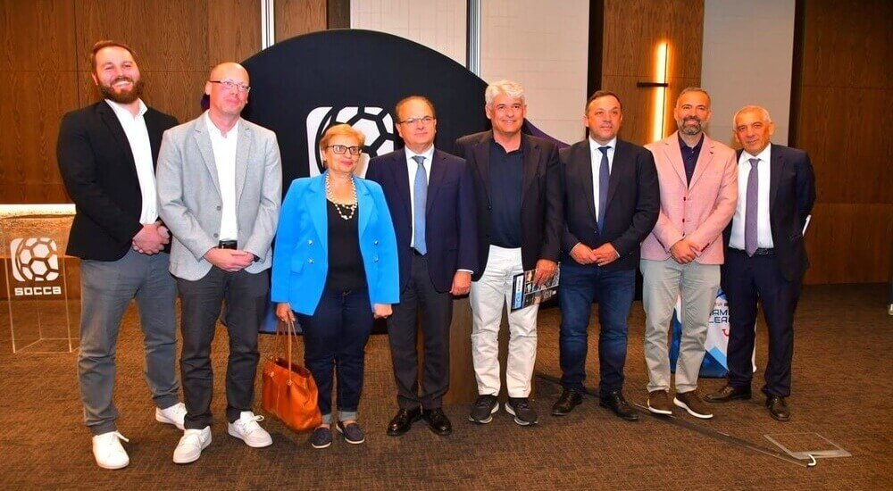 Στη φωτογραφία από αριστερά: Magnus Christoph Kochy – Πρόεδρος του Γερμανικού Socca Federation, Μαρία Λιονή – Αντιπεριφερειάρχης Ρεθύμνου, Γιώργος Μαρινάκης – Δήμαρχος Ρεθύμνου, Ανδρέας Φιορεντίνος – Γενικός Γραμματέας ΕΟΤ, Μανώλης Τσακαλάκης – Πρόεδρος Ξενοδόχων Ρεθύμνου & Γ.Γ της Πανελλήνιας Ομοσπονδίας Ξενοδόχων, Θάνος Παπαδόπουλος – Διευθύνων Σύμβουλος SOCCA International, Βασίλης Σκουντής – Δημοσιογράφος.